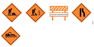 Estas son usadas para señalizar intervenciones como: reparaciones, construcciones y modificaciones sobre la vía o muy cerca de ella. Su objetivo es alertar a los conductores y peatones, ya que es necesario transitar con cuidado y reducir la velocidad.