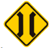 Puente angosto: alerta al conductor sobre la proximidad de un puente angosto en la vía. Por lo general, esta señal se usa cuando el estrechamiento es tanto, que sobre el puente puede transitar un solo vehículo a la vez.
