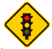 Semáforo: esta señal se usa en vías de alta velocidad y pocas intersecciones donde no hay semaforización con mucha frecuencia. Su objetivo es advertir a los conductores sobre semáforos que encontrará prontamente en la carretera, para que así tenga tiempo suficiente de reducir la velocidad y cruzar con atención y cuidado.